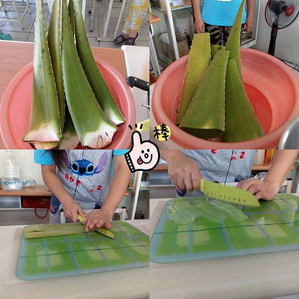 在飲用蘆薈飲之前,南興社區的主辦單位已經前一天在幫我們把蘆薈摘下。蘆薈分成外皮跟