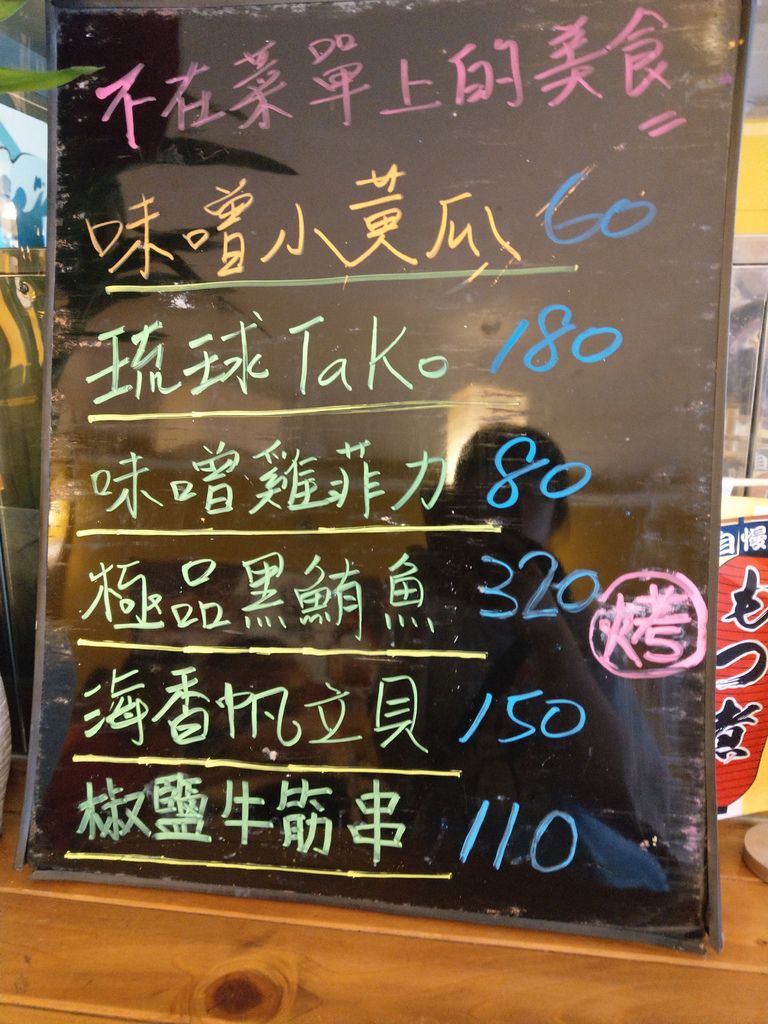 店內沿襲居酒屋的特色,在欣賞店內陳設時,記得往吧檯看,上面有塊小黑板,不要錯過,那可是店家當天的隱藏版菜單。