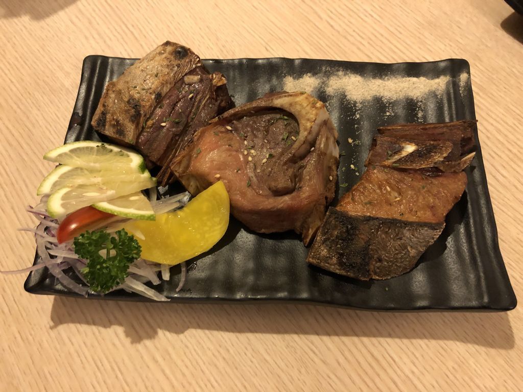 牛肋的料理手法都是紅燒或燉湯居多,沒有想到它也是烤肉的好良伴。這牛肋串並無太多佐料,高溫的烘烤逼出了牛肉的油脂,鎖住牛肉的甜味,搭配簡單的鹽巴及蔥花,吃下肚後只能給個”讚”來說明它的美味。