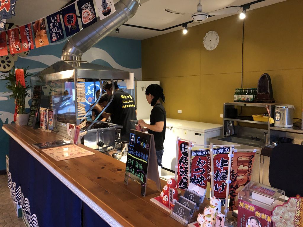 在海風吹徐的晚上,聆聽海浪,欣賞夜空美景,遠離城囂,吃著燒烤美食搭配著酒精飲料,此種放鬆度假的情境,夫復何求。不用出國,鄰近的小琉球,就可以追求此種度假的享受。到小琉球用餐,講到燒烤,一般人會選擇自助式的燒烤吃到飽,但媽咪帶著兩個活潑亂動的小孩,一邊燒烤一邊照料小孩,只怕到時候吃得不是美食,而是會遇到肉跟我裝熟、香腸跟我扮黑臉…等各種慘況。所以我們一行人覺得既然是來度假,還是放棄自助式燒烤吃到飽的選項,來到「筑安心串燒·居酒屋」決定讓專業的師傅來幫我們服務,輕鬆度假享受美食。