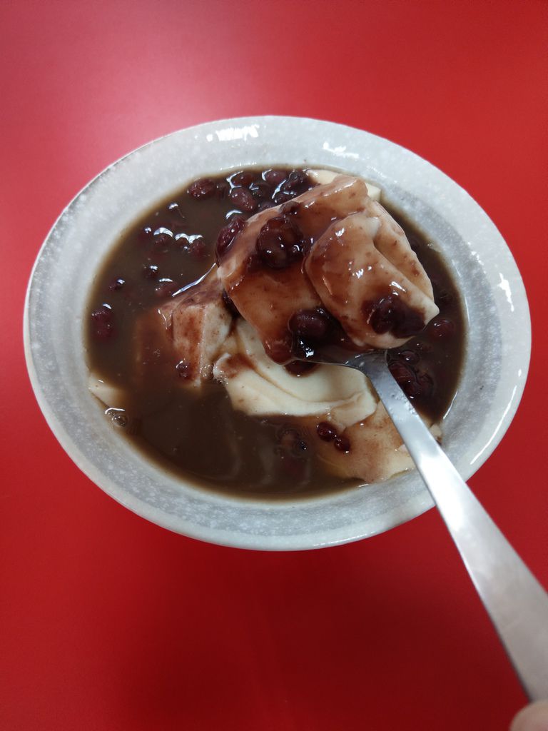 這是共學媽咪點的,回家做功課才知道豆花的做法有三種,鹽滷、石膏與葡萄糖酸內酯。老闆娘採用的是鹽滷的方式。鹽滷是來自海水蒸發製鹽過程中產生的液體。在日本鹽滷可是為健康的食材。而鹽滷製成的豆花其特色就是保留了黃豆的豆香。老闆娘就是想要給大家吃原味及健康的豆花,所以特地採用鹽滷方式製作。