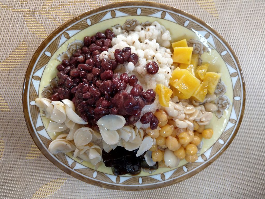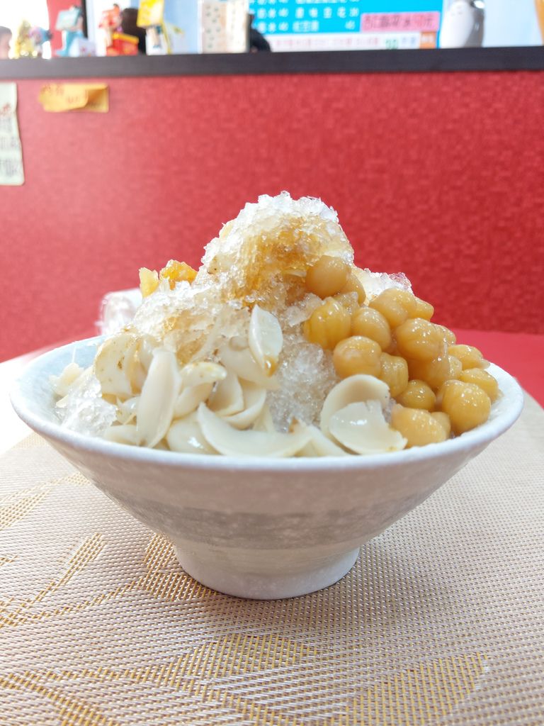 另外真的少見的是百合,我還真的第一次看到百合出現在冰品配料中。百合常用來入菜,在中醫來說養心安神、益氣補中、潤肺止咳等……功效。百合咬下的口感是鬆軟綿密的澱粉類口感,但後味則有帶一點微苦味。這口感搭配著挫冰及糖水,可是恰到好處的好味道。