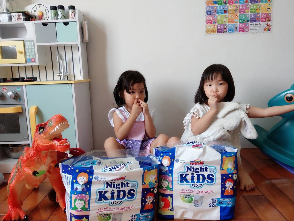 挑挑跟多多一個四歲多、一個三歲多,目前包尿布的時間也剩下晚上睡覺時間或是外出遠門。而他們自己正處於喜歡自己動手的年紀,這時候幫她們換成褲型的尿布,剛好可以訓練他們生活管理,自己換睡衣就寢。(迷之音:媽媽可以終於可以輕鬆一下)。