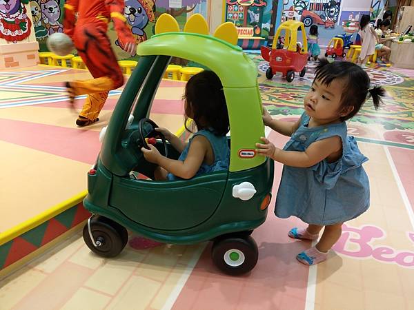 在這裡可以操控車車來個賽道競速,也可以親自上陣,手握方向盤遊車河。各式各樣的汽車,可以滿足許多車控的小孩!!