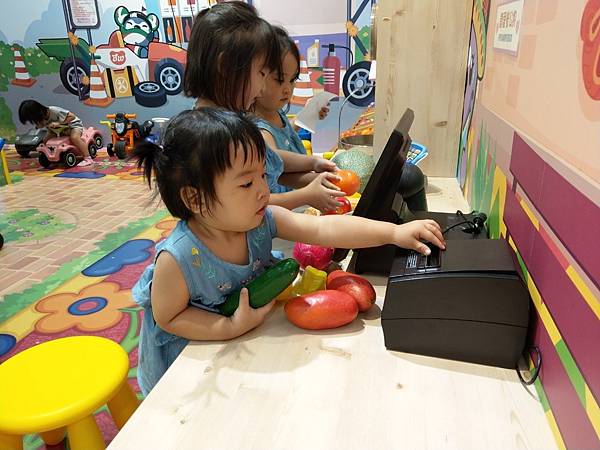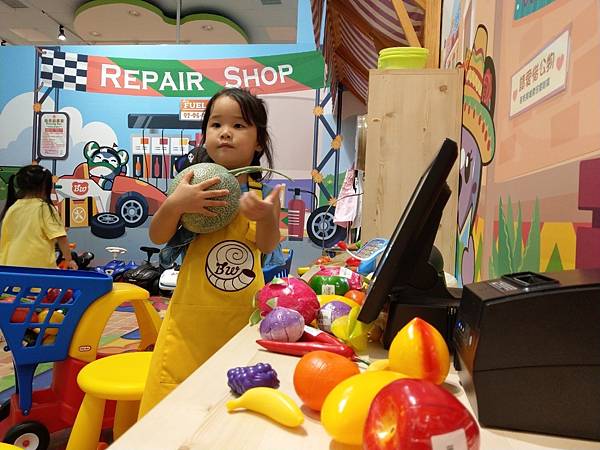 人客啊~~~快快來買菜唷!!這裡提供每天市場最新鮮的蔬菜水果。小閨蜜們可是開心的自動自發穿起圍裙,開始一日店員體驗。