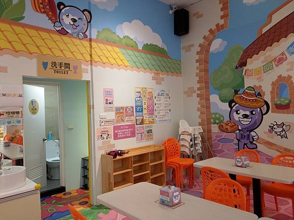 雖說隱身於佳瑪二樓,但裡面仍有寬闊的空間與良好的動線設計。 最特別的是內部設有親子廁所、尿布台及開飲機, 像瘋狂媽咪都單獨帶三個小閨蜜出門遊玩,這樣貼心的設計,方便放風三個小孩。