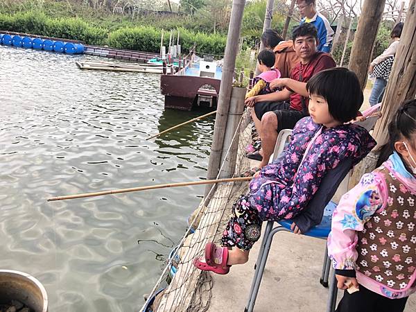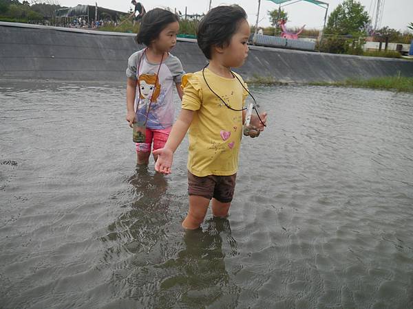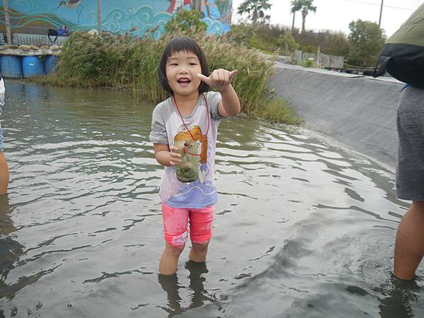 再這魚塭裡面,水深大概只有30公分,可以放心讓小閨蜜自行行走。