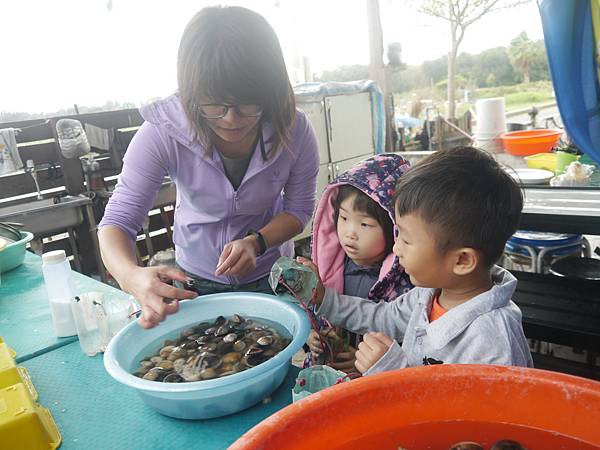 摸完蛤蠣後就可以交給專業的工作人員來協助吐沙。等等要來吃蛤蠣大餐了。