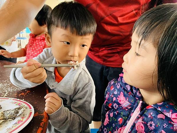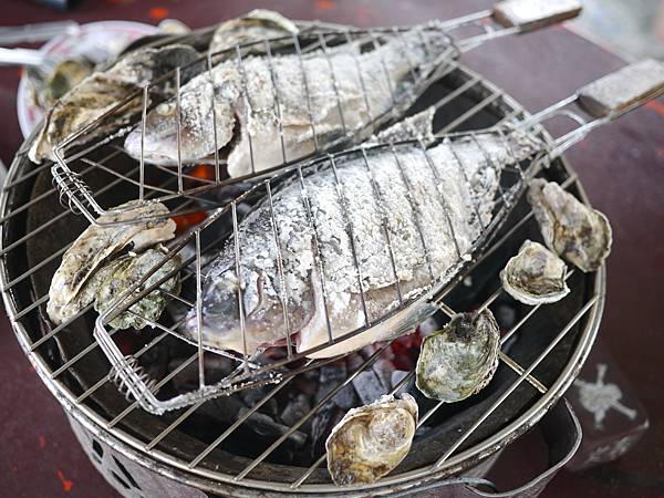 釣魚戰績為”0”沒有關係,老闆還是貼心的依照來訪的人數準備了蚵仔及台灣鯛及剛剛摸上岸的蛤蠣給大家品嘗。