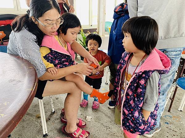 由於怕弄傷蛤蠣,所以這裡是光著腳丫下水唷,大家可以先在岸上換上老闆幫客人準備的拖鞋,另外小朋友怕受傷,也可以穿著不要的乾淨襪子下水唷。
