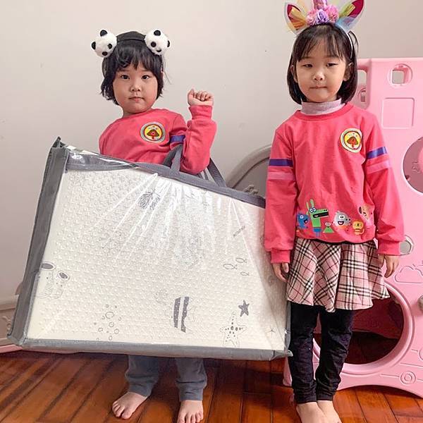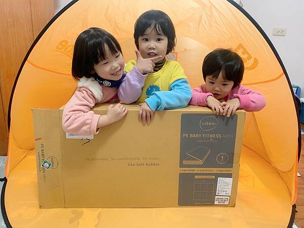 收到地墊的時候,真是期待萬分阿!開箱產品就是讓人心情愉悅。小閨蜜們也很開心一直督促媽咪開箱。光是紙箱設計上超級貼心,是從旁開箱。這樣在開箱過程當中,不會割到箱內的地墊啊。