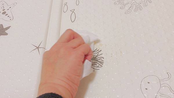 這次購買的Sobble折疊地墊海底世界-珍珠白,純白的顏色更能彰顯地墊好清潔的特性,有次不小心在地墊上打翻了咖啡,祭出法寶-濕紙巾擦擦就好,一切乾淨溜溜,來去不留痕跡。